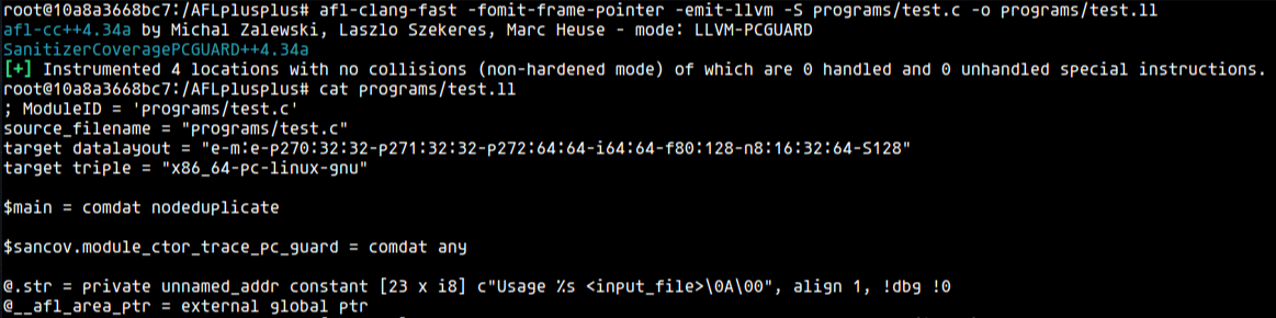 - -o programs/test programs/test.c /AFLplusplus/afl-compiler-rt.o /AFLplusplus/afl-llvm-rt-lto.o