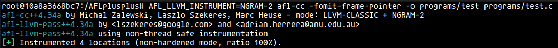 Finally, the last available mode was introduced on commit 5a74cf and is an LLVM-based implementation of the n-gram branch coverage proposed in the paper “Be Sensitive and Collaborative: Analyzing Impact of Coverage Metrics in Greybox Fuzzing” by Jinghan Wang, et. al.