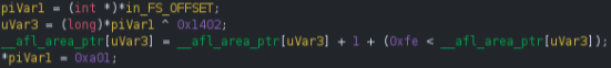 ). What changes in AFL++ is how the compiler materializes these operations. In the snippet, the right shift has already been applied to the constant at compile time, so instead of seeing a shift instruction we observe the adjusted immediate value directly (0x1402 >> 1 = 0xa01).