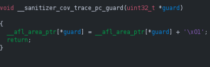 At a higher level, the rest of the logic still follows AFL’s original encoding scheme: the index into the shared coverage map is calculated as